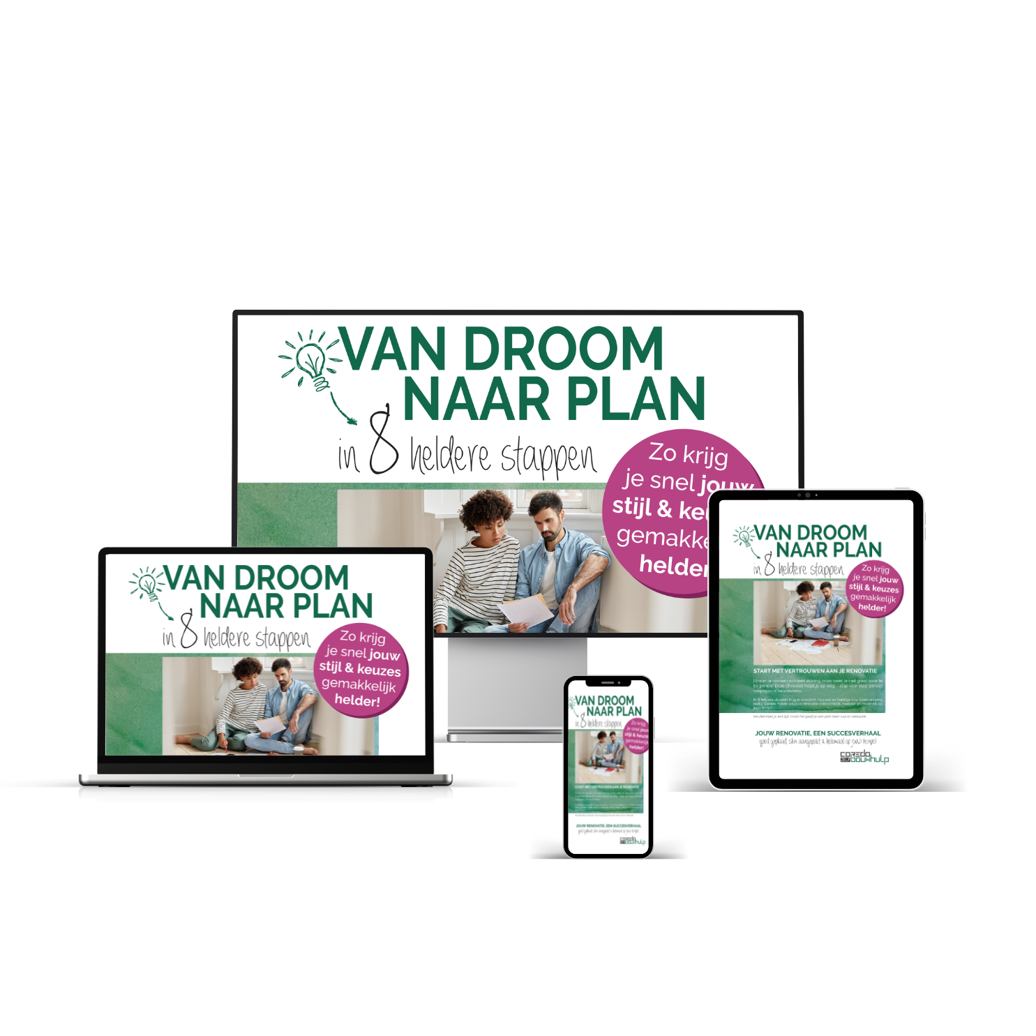 Breng structuur in je ideeën met onze GRATIS invulgids. In 8 overzichtelijke stappen maak je jouw persoonlijk renovatieplan - van droom naar plan. Volg onze MasterClass waarin we samen jouw renovatieplan helder krijgen. Geen vakjargon, maar begrijpelijke uitleg in mensentaal. Praktisch, duidelijk en helemaal op jouw tempo.